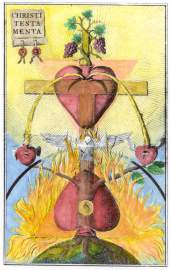 The above is a Universal Alchemical image which portrays the plight of man as he attempts to escape from this world into the inner spiritual realm which Yeshua called the Kingdom. The man's head and right hand which is raised and grasping for higher reality are in the spiritual realms, and this represents the three spiritual centers in our own physical body. The man's body and left hand holding a staff are in this world. The man is crawling, which represents his struggle to overcome the limitations of his physical reality. In the sun and moon we see the dynamic forces of male/female at work in the life of the seeker. Thus, the above is merely a graphic representation of the words of Yeshua/Jesus where it is written in the 22nd saying of the Gospel of Thomas: "Jesus saw infants being suckled. He said to his disciples, These infants being suckled are like those who enter the kingdom. They said to him, Shall we then, as children, enter the kingdom? Jesus said to them, When you make the two one, and when you make the inside like the outside and the outside like the inside, and the above like the below, and when you make the male and the female one and the same, so that the male not be male nor the female female; and when you fashion eyes in the place of an eye, and a hand in place of a hand, and a foot in place of a foot, and a likeness in place of a likeness; then will you enter the kingdom."